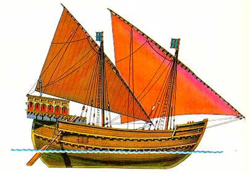 The sailing vessel had one or two masts setting lateen sails or a square foresail. She was steered by two steering oars