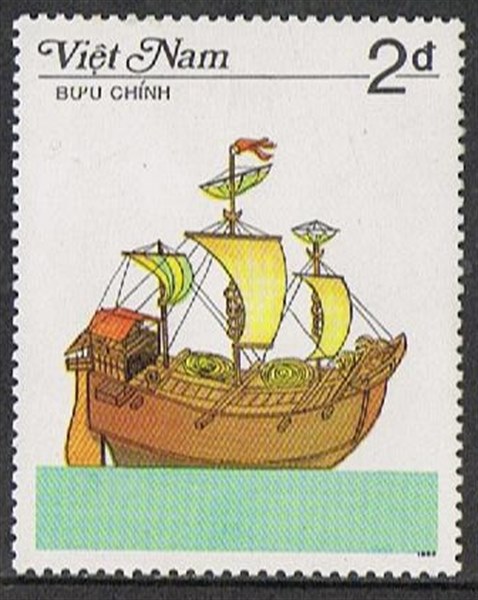 The ship on the stamp is an early type with one mast, which carried a square sail later types from the 15th century carried multi masts.