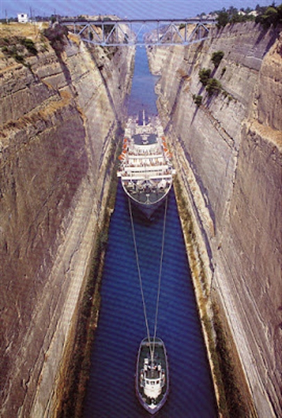 The stamp shows also the Corinth Canal see: http://en.wikipedia.org/wiki/Corinth_Canal