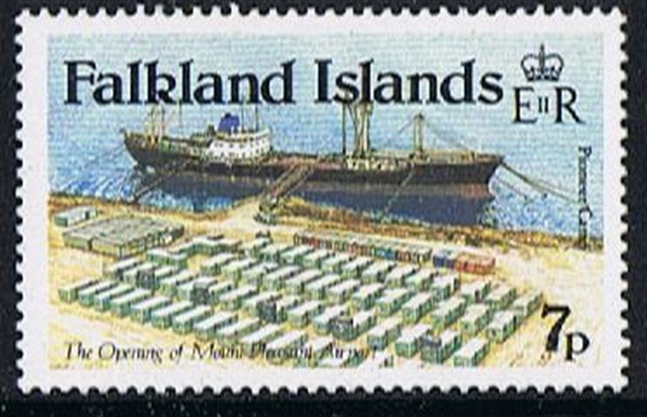 26 September 1983 she sailed from Avonmouth, U.K., with on board 4,000 tons of equipment and material, and a work force of 24 men. Thirty-two days later she anchored at east Cove, Falkland Islands, where they would construct an airport at Mount Pleasant. The ship was anchored close to the shore and connected to it by a Bailey bridge to serve as a floating jetty for the duration of the work. She also provided satellite communication with the contractor’s main office in Great Britain.