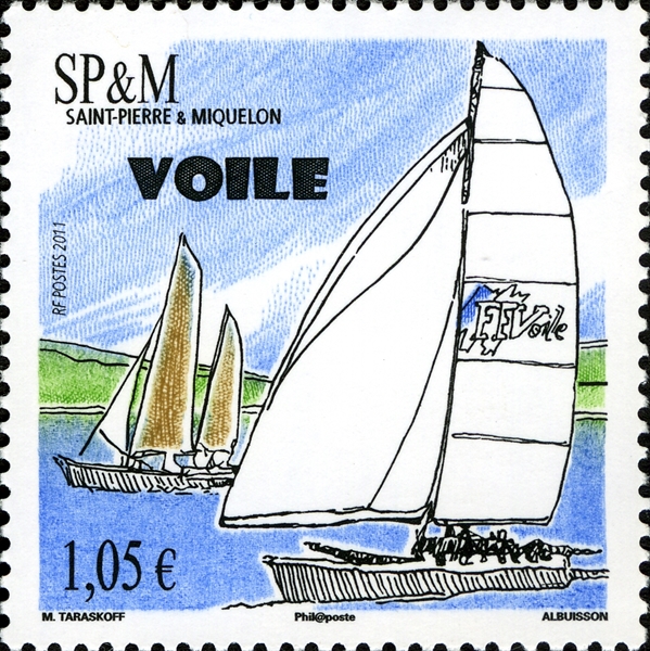 For the sailing sport (I believe) this stamp was issued in 2011 by St Pierre et Miquelon, the two yachts are not identified. More info on the stamp issue is welcome.