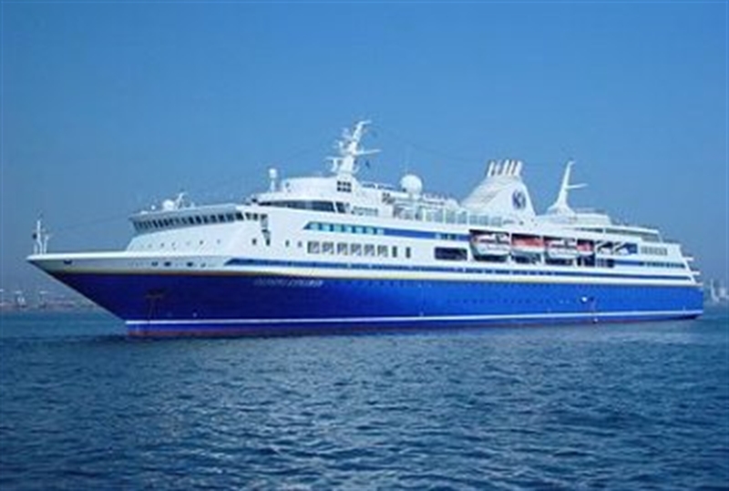 The only cruise ship I can find with a blue hull which visited Havana is the EXPLORER and compare the stamp with a photo I believe she is depict. She has a sister but she never visited Cuba so far I can find.