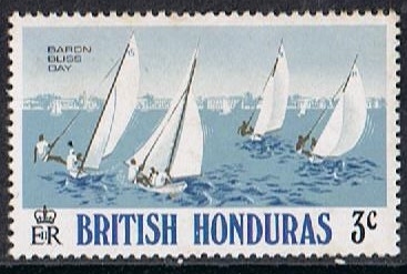 Baron Bliss Day: The stamp issued by British Honduras in 1973 of 3c shows us some yachts, most probably local yachts and not possible to identify during a race in Belize City on Baron Bliss Day.