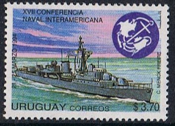 For the XVII Navy Conference Interamerica 1994 the Uruguay post issued a stamp of $3.70 which depict a frigate of the Uruguay Navy. The stamp is designed by Carlos Menck Freire.