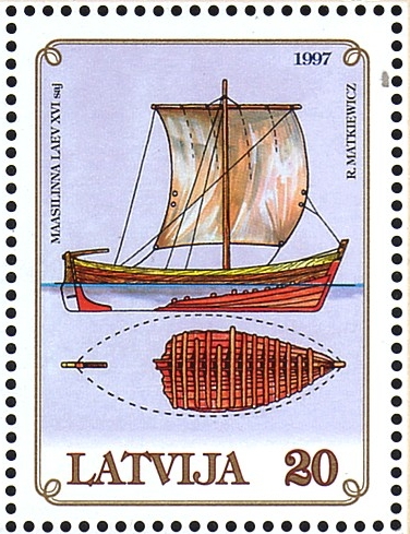 The Maasilinn ship, built about 1560 is one of the oldest wrecks ever found in Estonian waters. The illustration depicted on the stamp shows a reconstruction of what the ship may have looked like.