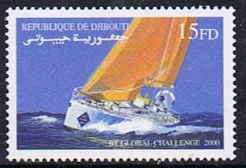 The 15 fd stamp of Djibouti issued in 2000 shows us a sailing yacht with the inscription “BT Global Challenge”, I could not find a yacht with this name and after finding the web-site http://www.seachallenge.com/index.html which shows the same yacht with the logo on the bow as depict on the stamp, the only photo I could find on the net of the yacht. Not a name is given but she is one of the “Challenge 67 class” of which 14 were built for the BT Global Challenge 1996/7.