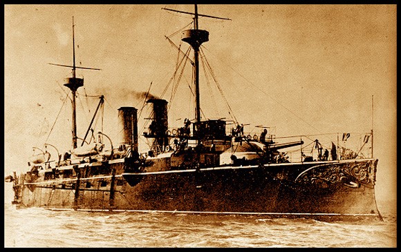 The Cruiser VIZCAYA was one of the prides of the Spanish Fleet. Part of Admiral Cervera's Squadron, she was trapped at Santiago de Cuba by the blockading US Fleet of Sampson and Schley and destroyed when the Spanish ships sortied on July 3, 1898.