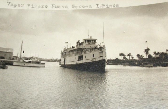 When the prison was ready, she was for many years the main way of communication between the mainland and Nueva Gerona, shipping passengers, grapefruit, melons, sugar, marble etc..., up to four cars she could carry in her cargo hold, and a capacity for about 160 passengers also transported she criminals and political prisoners to and from the prison. The crossing took about 8 hours from the island to Batabano Surgidero (south of the province of Havana) with a regularity of 3 times a week. The cost of a ticket was 3 dollar per passenger, food and cabin not included.