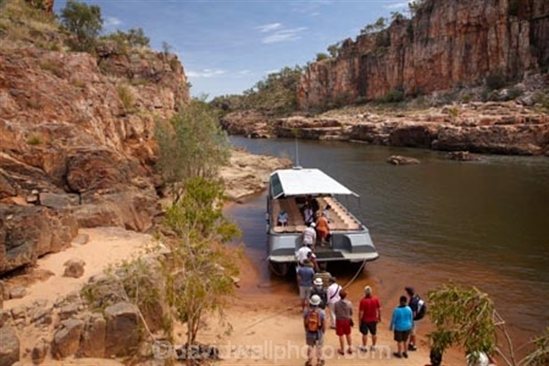 The Australian Post gives by the stamp: Canoe and flat-bottomed boats carry tourists along the dramatic Katherine Gorge carved through ancient sandstone by the Katherine River and the central attraction of Nitmiluk National Park. https://en.wikipedia.org/wiki/Nitmiluk_National_Park