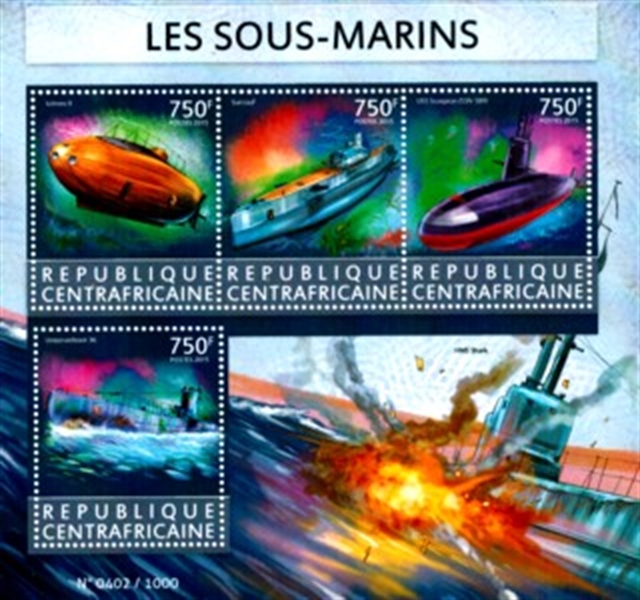 Central African Republic 2015 sgMS?, scott? ( She is depict in the margin of the MS. The other ships depict on the MS are the ICTINEO II, SURCOUF, USS SCORPION, U-36.)