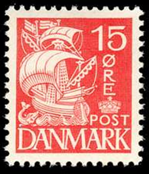 Denmark has used many stamps with a caravel design, a little awkward design, it shows us a caravel redonda under sail.