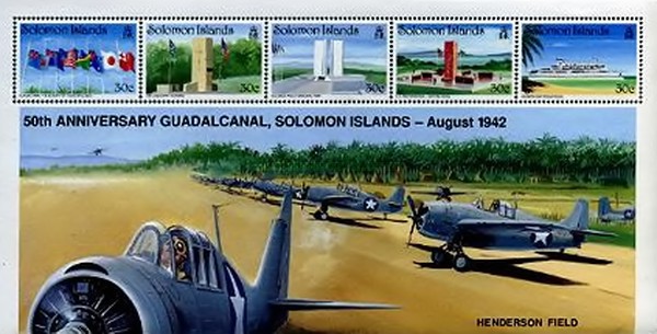 On a recent stamp from the Solomon Isl. issued Aug. 1999 is depict on the 30 c the cruise vessel "OCEAN PEARL", used as a reunion ship in the Solomon Isl. for World War II veterans. In 1992 two sheetlets of the 50th Anniversary of the Battle of Guadalcanal were issued one of this stamps would have depict the same vessel, but when I received the sheetlets the top stamps of one of the sheetlets was missing, and so far I know that stamp was never issued.