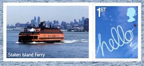 The British Royal Mail issued a sheet of Hello Stamps for the World Stamp Show in New York from 28 May until 4 June 2016. One of the labels shows us a Staten Island Ferry, which is one of the John F. Kennedy class of which three have been built in 1965.