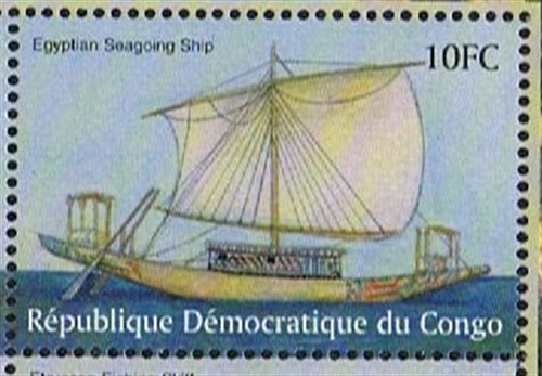 The stamp inscription gives that it is an Egyptian seagoing ship, but comparing it with photos on the internet it is a ceremonial sailing boat for use in the voyage to the "next world.