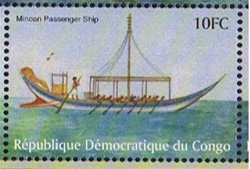 The stamp is designed after a fresco in Akrotiri on the island of Thera that was destroyed by an earthquake followed by a volcano eruption between 1650-1550 BC.
