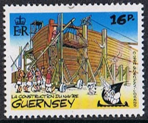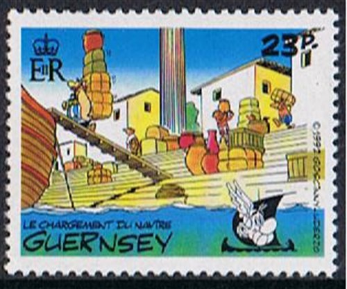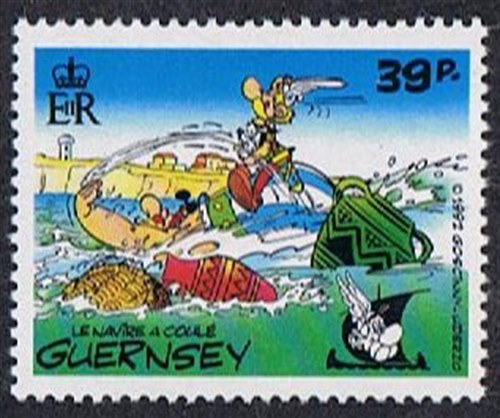 PTT Guernsey approached the studio Le Grain, the nominated designer of the strip, cartoonist and creator of Asterix, Albert Uderzo. He was asked to design five stamps. And his instinctive understanding what was needed, resulting in the fact that the subject and the medium were suitable for each other.