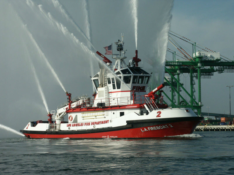 This fire boat was built under yard no S143 by Nichols Brothers Boat Builders, Freeland, Wa. For the Los Angles Port.