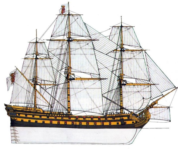 Armament when build : lower deck 30 – 24pdrs., upper deck 32 – 18pdrs, quarter-deck 18 – 8pdrs, 2 – 3pdrs.