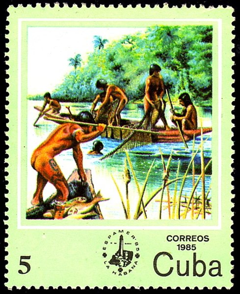 The dugout canoe of the Tainos was long and narrow, flattened bottom, no keel, hull tarred.
