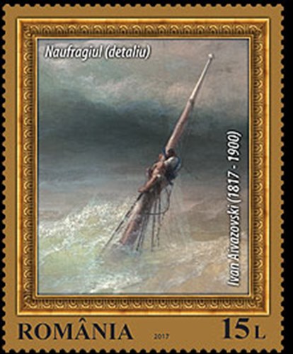 Romania issued four stamps in 2017 depicting marine landscapes in paintings, only the 15l depict a part of a mast of a shipwrecked vessel, on which some people cling. Could not find anything on the wreck, so most probably it is an artist imagination of a shipwreck. The painting is in the National Art Museum in Bucharest, Romania.