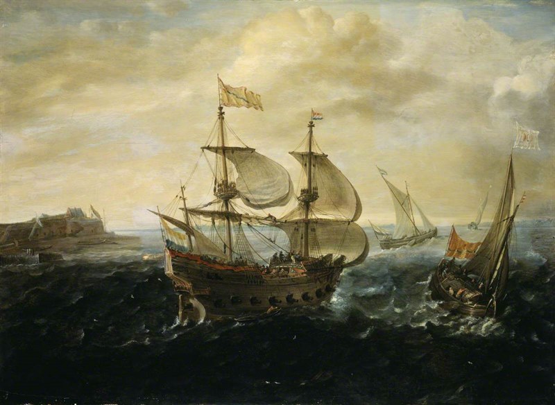The painting, “A Dutch ship running out of the harbour” is now in the National Maritime Museum at Greenwich, Great Britain.