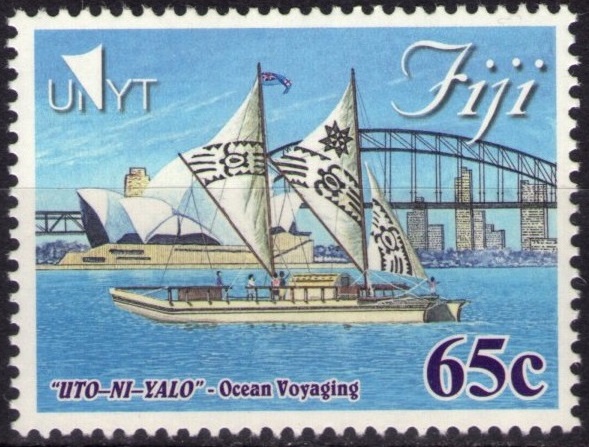 Across the Pacific, the voyaging canoe is said to represent genealogy. Pacific Islanders trace their origins to certain canoes, for each is a sacred and living treasure that connects people to their ancestry. The canoe is origin and possibility, heritage and story, and a poetic, powerful metaphor of planet Earth, reminding us that we are an island of finite resources, floating in the sea of space. As she voyages, the canoe embodies balance, harmony, teamwork, and respect. If one of her hulls is damaged, we take actions to repair it and prevent sinking. So too is our responsibility for the Earth, to care for our home as though the planet is on loan to us from future generations yet to be born… Uto ni Yalo is one of seven double-hull canoe vessels built in 2010. The design is modelled of traditional vessels called vaka moana ‘boat of the sea’. The vessels maiden voyage was in 2011 called Te Mana O Te Moana ‘The Spirit of the Ocean’. The voyage involved many Pacific Island nations and sailed from New Zealand to Hawaii and onto San Diago, United States. The purpose was to advocate for environmental and climate change issues, promote traditional sailing methods and unite pacific communities and reconnect to thesea. The Uto Ni Yalo, which uses large sails to navigate the seas, was part of a fleet of traditional canoes that embarked on a voyage from Cook Islands to Sydney to highlight the threat of climate change in 2014. Much like that epic voyage, the Uto Ni Yalo encountered difficulties with low wind conditions while sailing towards Levuka.But the sailors were prepared for such contingencies. The Fijian canoe is named Uto Ni Yalo, which quite literally translates to ‘Heart of Spirit.’ Is the Uto Ni Yalo a Fijian Drua? It is not if you are talking about its design. The Uto Ni Yalo is a fusion of traditional central Pacific canoe design, utilizing modern boat-building materials and technologies. Together with the other six other canoes, the Uto Ni Yalo was built with the generous support of Okeanos in Auckland at Salthouse Boatbuilders. These newly designed sailing canoes vaka moana [Pacific]/ waka hourua [Maori]) are all constructed of e-glass and foam, using advanced infusion processes. Nevertheless, traditional ingenuity and knowledge remain clearly visible with the twin hulls cunningly connected by wooden beams and lashed only with rope. Each vaka is finished with intricate traditional designs, and carved and painted using colours and insignia representative of each nation. Much effort and detail has gone into creating a truly eco-friendly vaka that harnesses only wind and current to travel. To aid maneuvering in tight modern berthing stations, or to assist in harbor entries, a solar powered system serves as an auxiliary propulsion option. This merging of past and present ideas serves as a useful metaphor for solutions to our planet’s energy and climate change issues. 65с- The Uto Ni Yalo sailing pictured sailing in front of the Sydney Opera House. 1.5$- The Uto Ni Yalo’s historic voyage to San Fransisco.