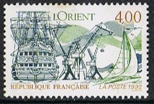 France issued two stamps in 1992 for tourism of which the 4,00F stamp shows the stern of a ship in Lorient while on the right is visible a sailing yacht.