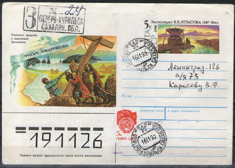 Russia1990; 5k.Postal envelope. Source: http: //discover-history.com/explorers/Atlasov-Vladimir-Vasilyevich.htm