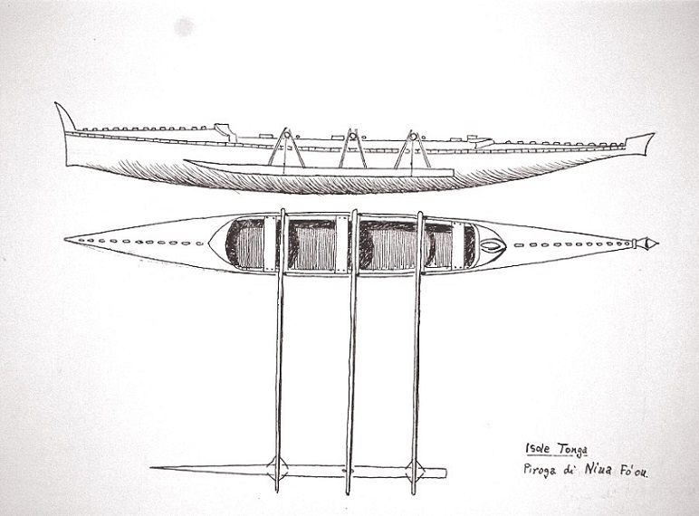 In 1996, the Tongo Post issued a Miniature Sheet dedicated to the 50th anniversary of the evacuation of the inhabitants of the Niuafo’ou Island. Niuafoʻou was put on the European maps by Willem Schouten and Jacob Le Maire during their famous circumnavigation of the globe in 1616. Niuafo’ou is in the most northerly group of Tongan islands and is an active volcano. At the centre of the island is a huge lake of bubbling water. The coast is steep and rocky with just a few black sand beaches. Other names for the island are “Good Hope” island and “Tin Can” island. The name “Tin Can” Island comes from the 19th Century method of delivering mail to the island. Traders put mail and packages in sealed biscuit tin cans, tossed them overboard where they were retrieved by strong swimmers from the island. The name Niuafo’ou means “many new coconuts” in the native language.It is 710 km east of Fiji, 430 km SW from Samoa, and 3,000 km north of New Zealand. The volcano is active with at least 10 eruptions, both explosive and effusive since the 1800s. A major eruption in 1946 forced evacuation of most of the 1,200 inhabitants. The eyewitness Quensell told: "We were visited by some terrible earthquakes; some lasted forty minutes. The island was rocking for nine days with terrible force. It actually cracked to pieces with a long trench some two to four feet wide; the ground rose up and sank; we took to the hills some 500 feet above the sea. On the 9th of September the ground lifted some 25 to 30 feet in places, the earth opened and liquid lava poured out destroying three fourths of the township of Agaha. In less than five minutes the trees were swept away; my home was gone. It was terrible. We could get no help as we were 400 miles from Tonga. Our radio was gone. We did have food and water and were fairly safe in the hills". The 1946 eruption started on Monday, Sept. 9, 1946. It knocked out local radio communications for over a week. The Tonga government asked passing aircraft to take a look at the island a week later. The aircraft described volcanic activity at the north end of the island with part of a village being destroyed. This was the tenth eruption of Niuafo’ou in a little over a century. The main casualty of the eruption was the capital village of Angaha where the government buildings and supplies were obliterated. Yet the eruption had not touched the majority of gardens and villages on the island, unlike the 1943 eruption which killed most vegetation, dusting it with enough ash to cause a local famine. Earthquakes persisted well into the last week of September. Following the eruption, the Tonga government decided to evacuate the island. They held a local election to decide what to do. Nearly 1,100 chose to evacuate. 288 chose to stay. With this, the Tongan government chose to evacuate everyone. This decision was not universally popular among all residents, but they did move. Most were gone by the end of December with the remainder evacuated by the following October. Half of them returned in 1958 when permission to return was granted. There was a second fiery eruption in January 1947 reported by a passing yacht but at the time most of the population had left the island. Artist Aldo Cherini shows Niuafo’ou canoes (see fig.).