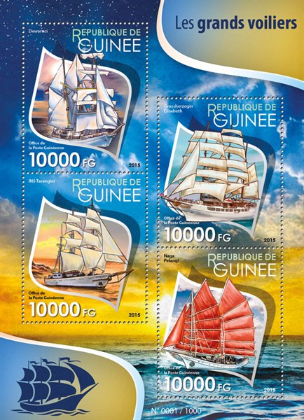 Guinea issued in 2015 a sheet with four stamps and a miniature sheet which shows Tall Ships.