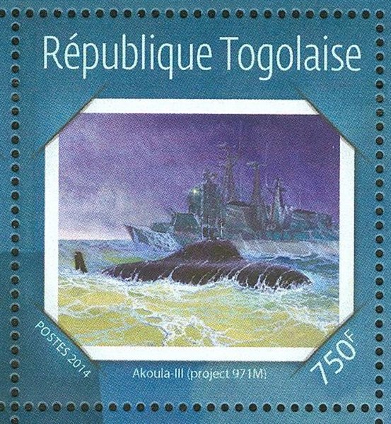Togo 2014 750F sg?, scott? (The stamp gives the name AKOULA which is wrong, the warship in the background of the stamp is not identified.)