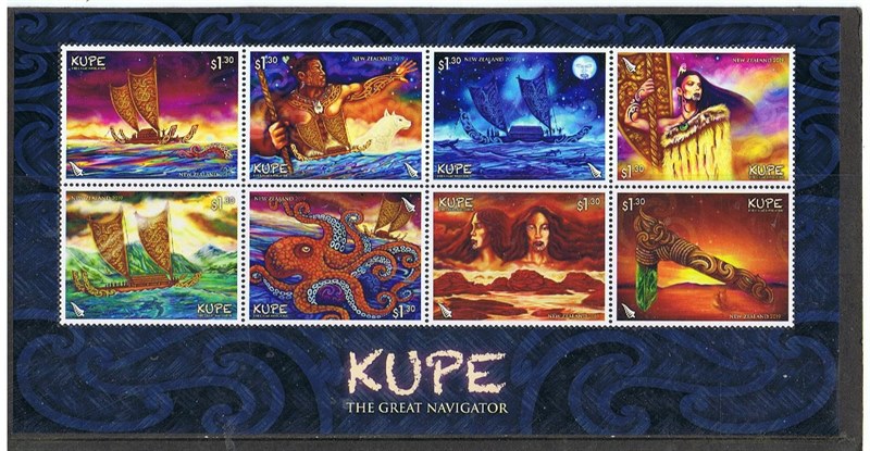 This stamp collection celebrates Kupe the person and Kupe the legend. It depicts people, places and aspects of Polynesian navigation attributed to and associated with him. It also recognises his contribution to the whakapapa (history) of Aotearoa New Zealand and honours his position as one of our greatest navigators.