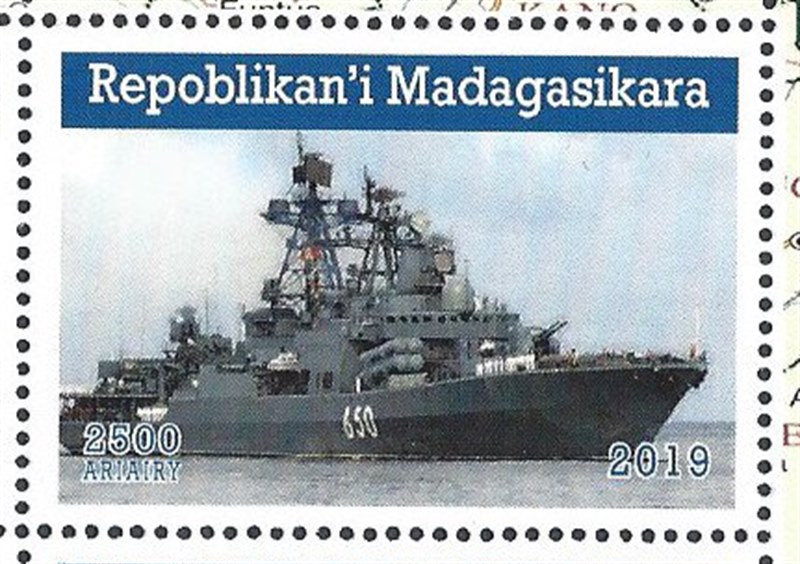 The sheet issued by Madagascar gives that the vessels depicted are in service by the Nigerian Navy but the vessel with the pennant no 650 is not a Nigerian warship, but a Russian. She is the Guided Missile Destroyer ADMIRAL CHABANENKO.