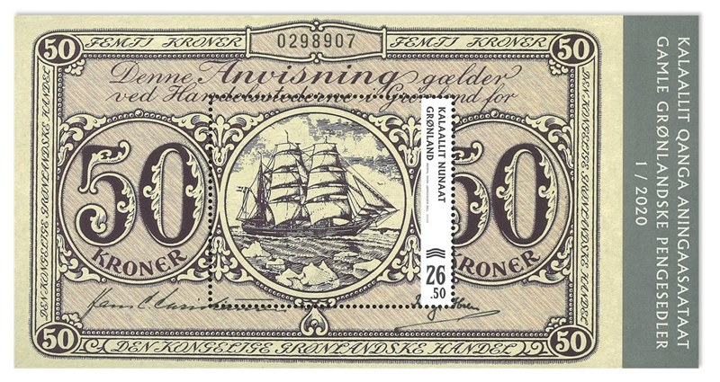 the correct name for the Greenland banknotes, and which is also indicated on the banknotes themselves. The final stamp and souvenir sheet in the series about Greenland banknotes will be issued in 2021, with its very own history.