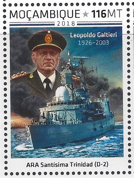 The destroyer lost her Lynx helicopter on 4 May when the aircraft hit her flight-deck as the Argentine fleet was redeploying. She spent the next few days in dry dock to repair the mechanical problems which reduced her speed during the operations of 1 May. In the following weeks, SANTISIMA TRINIDAD was engaged in patrol duties off Patagonia. During the Air Force attacks on Bluff Cove on 8 June, SANTÍSIMA TRINIDAD played a key role by jamming the frequencies used by the Sea Harriers air controllers with interference signals.[18] Once the end of hostilities was declared, SANTÍSIMA TRINIDAD escorted the British transport CANBERRA into Puerto Madryn with about 3,000 Argentine prisoners on board.
