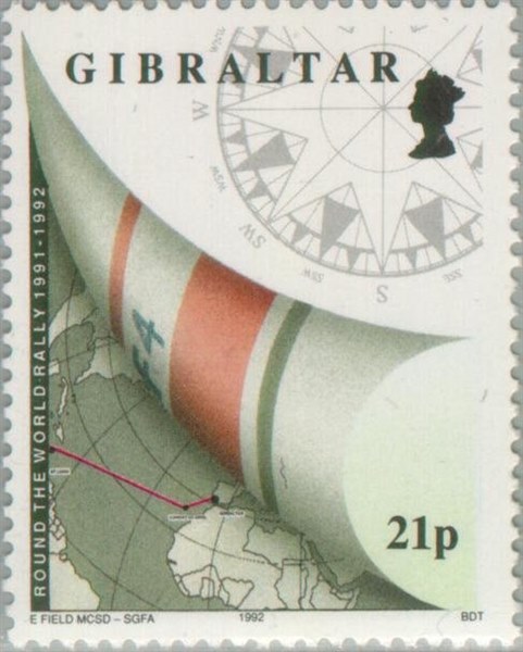 Gibraltar issued a set of stamps and a miniature sheet for Europa 92 First round the world cruising yacht rally.