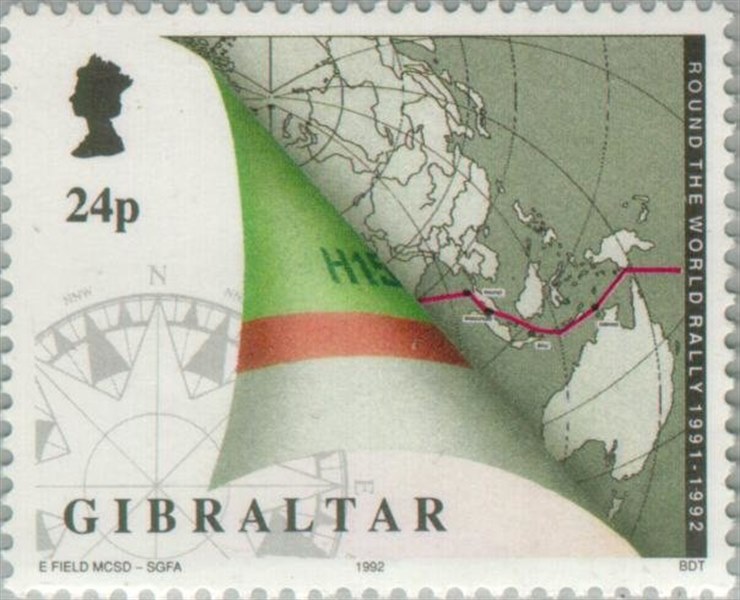 Gibraltar issued four stamps and a miniature sheet on 15 April 1992 to commemorate the 15-month sailing event Europa 92. Only the miniature sheet depicts watercraft, a stylized sailboat in the lower border which takes the place of the letter “A” in “GIBR LTAR” while the stamps show paper pulled back to look like sails and to reveal various legs of the race. The event was conceived by nautical author Jimmy Cornell as a competitive event for amateur sailors and was open to monohulls between 40’ and 80’ length overall. The competition was divided into two divisions. Sailing and Cruising. The latter was distinguished by boats being permitted to use their engines when the wind fell light.