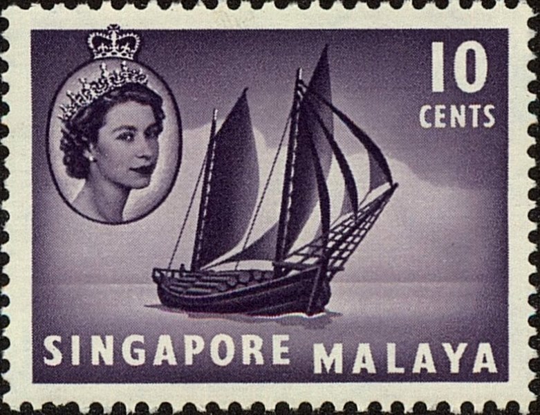The 22c stamp issued by Singapore with a clipper ship has in the top on the left side another watercraft which is named by Stanley Gibbons Ships on Stamps as a Tongkang