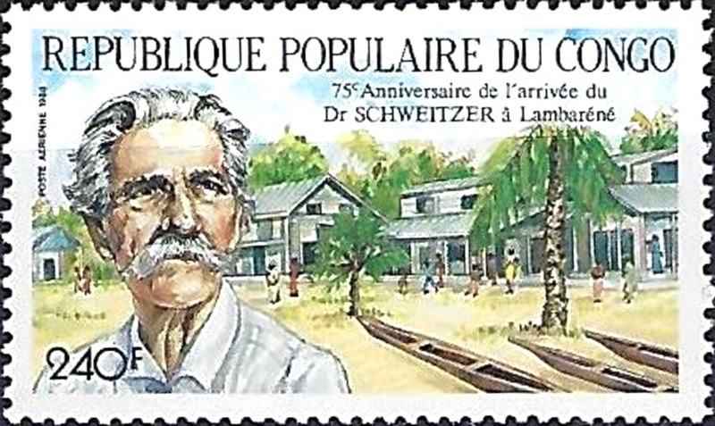 A few countries issued a stamp to honour Dr. Albert Schweitzer the founder of a hospital in Lambaréné, in Africa.