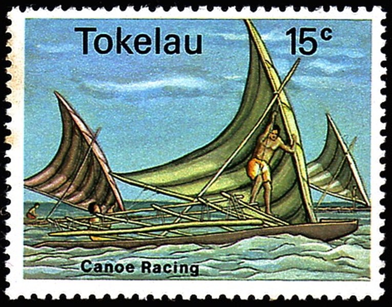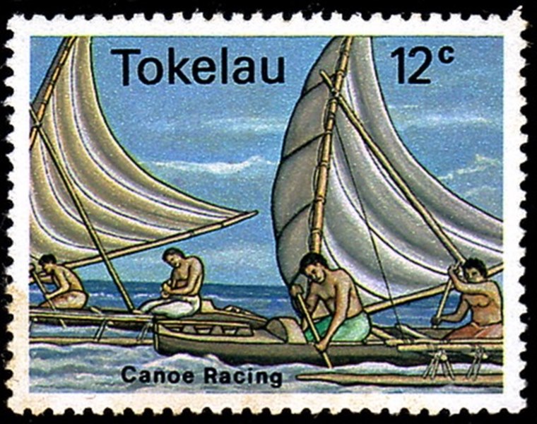 Canoe racing provides an opportunity for the young men to prove their skill and strength, as shown on the four stamps issued by Tokelau on 08 November 1978. The races are held about three times a year and anyone from the three atolls may enter the competition. Canoes are paddled by individuals or teams, are sailed, or paddled and sailed. The largest canoe seat 10 people in pairs. They are usually made from the kanava tree, and have an outrigger on the left side.