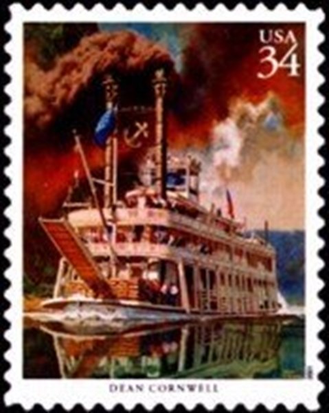 The stamp issued in 2001 by the U.S.A. Mail is designed after a painting made by Dean Cornwell (1892-1960). The painting is depicted on the cover of the “True” magazine in February 1953.