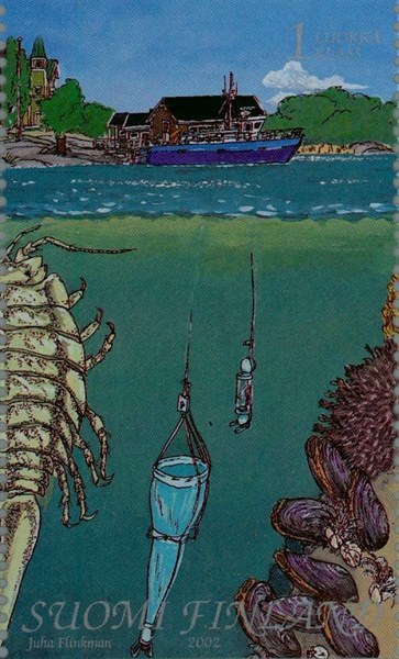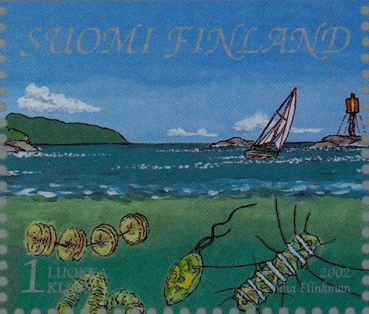 On a set of five stamps issued by Finland in 2002, Mr. Dan Rodlie the editor of Watercraft Philately has identified the small watercraft on the stamp as the SADURIA, the sailing yacht on another stamp from the set is till so far not identified.