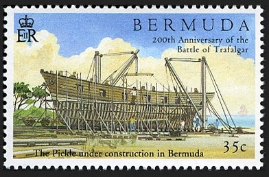 Great Britain 2005 42p sg 2577 ( the ship-of-the-line is not identified, the PICKLE is in the background.)