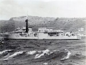 On 23-02-'52 Government of South Africa, renamed SAS SIMON VAN DER STEL, commissioned into South African Navy: 23-04-'53, in '62-'63 converted to a fast helicopter carrying anti-submarine escort, displacement:2205/2850 tons, Draft:5.20m. 2 Westland 'Wasp' helicopters, '72 into reserve, '76 broken up at Durban.