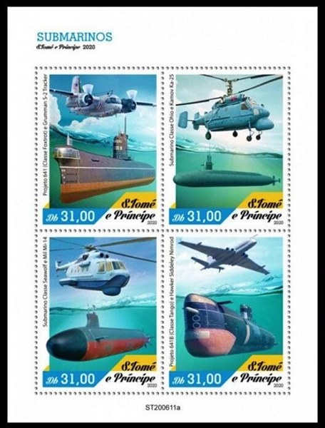 St Tome issued four stamps and a miniature sheet with submarines in 2020.