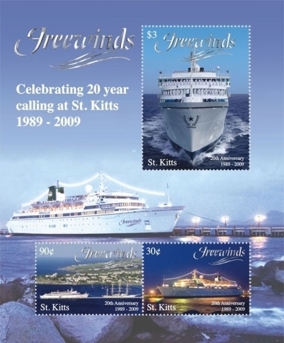 For the 30th anniversary FREEWINDS visiting the Curaçao Harbour, Curaçao issued two stamps and a MS.