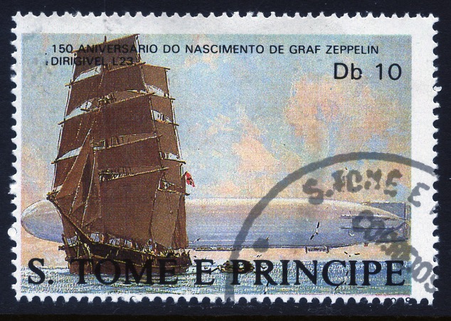 Sao Tome e Principe issued a Souvenir Sheet in 1988 to commemorate the 150th birthday of Graf Zeppelin. Two stamps of Db10 in the M.S. depict the barque ROYAL.