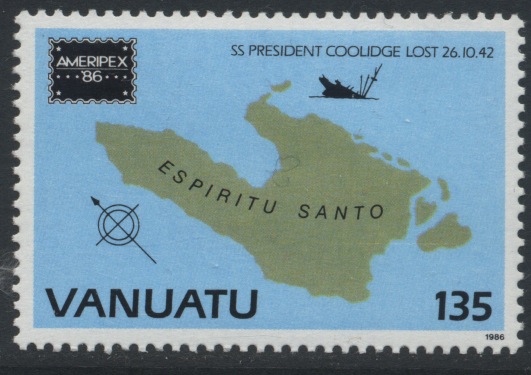 On 26 October 1942 at 09.06 a.m. the PRESIDENT COOLIDGE entered the approach channel, on 09.30 an explosion was heard and a few minutes later an other explosion, she had struck two mines laid by USS GAMBLE.