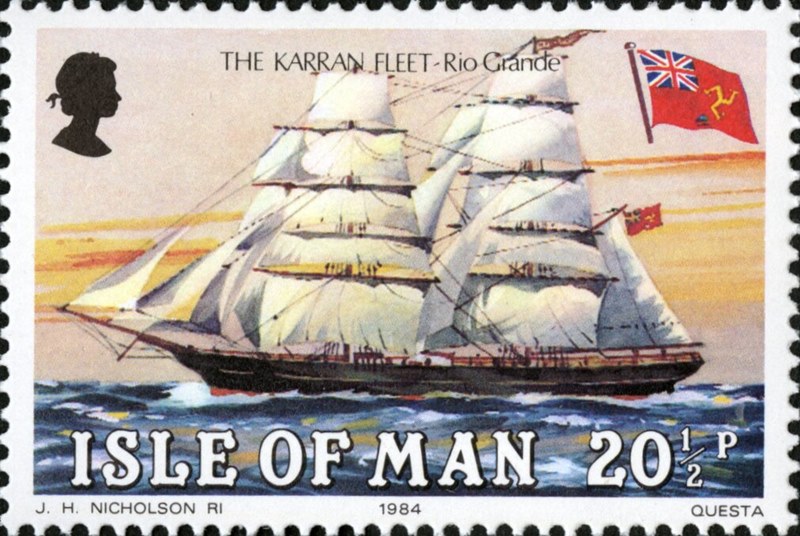 Between mid 1800s until the 1920s the Karran fleet consisted of 11 ships. The man behind the company was John Karran of Scarlett, Castletown, Isle of Man. Three of his sons were seamen. He was financing the ships of his sons by loaning them the money, and when repaid the money was passed to the second brother and then later the third. This three brothers Thomas, Robert and George were expert seamen and traders and the business expanded into a thriving company. The company operated from China waters to South America to Europe. All the ships were later registered in Castletown, Isle of Man, and they flew the house flag of the company. The house flag which consisted of a white background with a blue border and the Three Legs emblem.