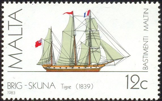 263 gross ton full rigged ship built in 1813 and owned by John R Stuart, a Valletta